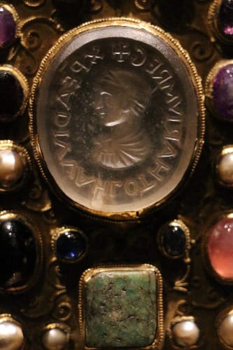 Even Radbod, the archbishop of Trier and member of Arnulf's court, had a gem seal, now in the Hamburg Museum für Kunst & Gewerbe. Yet the depth of the etching can perhaps indicate the differences in usage, with Radbod's gem not meant to make impressions in wax like Lothar II's.
